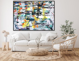 Grande dipinto a olio modernista "Scogliere colorate" di Carl Berndtsson (1902-1982)