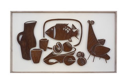 Targa murale Fat Lava della Germania Ovest realizzata da Ruscha. Colori: toni dell'arancione e del marrone. WGP / MCM / anni