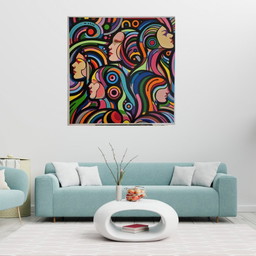 Dipinto astratto modernista di Bill B. Long in cornice arcobaleno originale