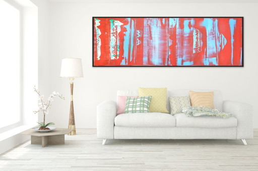 Abstract Expressionist Cat and Bat Painting Oil Drip Painting and Pallet Knife Acrylic Paint red primed canvas unframed 35x45cm