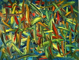 Sulle colline, tecnica mista con acrilico, inchiostro e sabbia