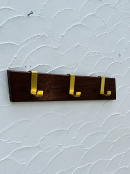 Appendiabiti vintage in legno e ottone con 3 ganci, anni '60