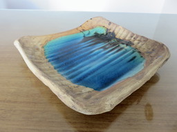 Vaso in ceramica con smalto interno blu, anni '60Vaso in ceramica con smalto interno blu, anni '60