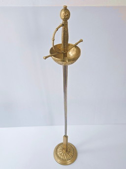 Posacenere vintage anni '70 a forma di spada, in ottone e bronzo dorato.