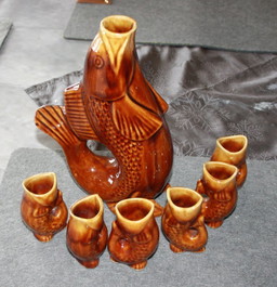 Brocca in ceramica in stile Art Déco revival egiziano cecoslovacco.