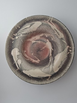 Piatto da parete in ceramica smaltata dipinta a mano, realizzato dall'azienda austriaca Gollhammer Keramik, anni '70.