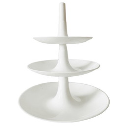 Centrotavola bianco con vassoi di plastica bianca impilati, Italia anni '70