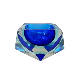 Posacenere vintage boemo in vetro zirconia cubica con fiore blu, anni '60 e '70, Seguso Cobalto