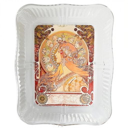 Cornice in vetro vintage, cristallo, stile art nouveau, stampa fotografica del dipinto Mucha, Zodiaco, anni '80