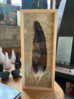 Sandra Melin Raptor Acrilico su piuma di tacchino neraSandra Melin Raptor Acrilico su piuma di tacchino nera