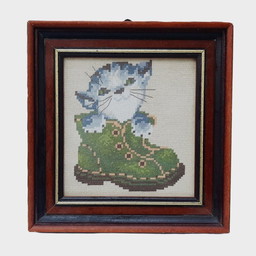 Punto ago tedesco d'epoca, Gobelin, paesaggio estivo, incorniciato