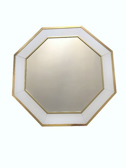 Specchio da parete di metà secolo proveniente dall'Italia con una cornice in legno placcata in oro decorata