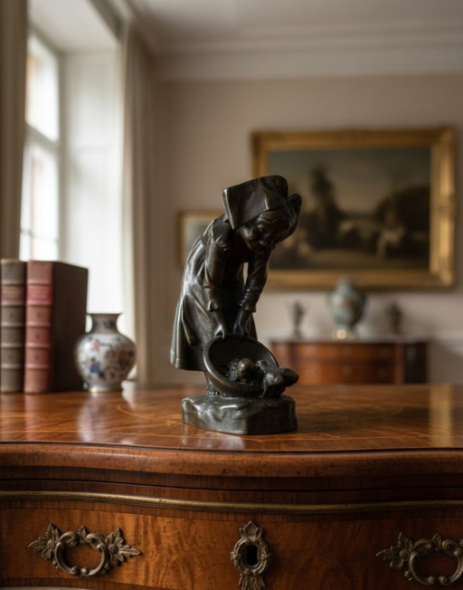 Albert Schultz “La ragazza delle oche” Scultura galvanica (finitura in bronzo) – Strasburgo intorno al 1900Albert Schultz “La ragazza delle oche” Scultura galvanica (finitura in bronzo) – Strasburgo intorno al 1900