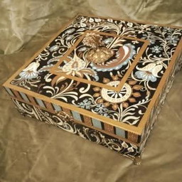 Vassoio Art Déco, intarsio e cristallo, 1950 – Francia
