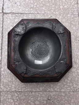 Posacenere in legno e peltro, Italia 1950