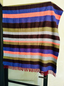 Plaid floreale in lana vintage – Double-face – Rosso caldo con crema – 174x191 cm