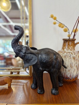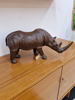 Set di due statue di animali vintage in pelle - Ippopotamo e Rinoceronte - nello stile di Omersa