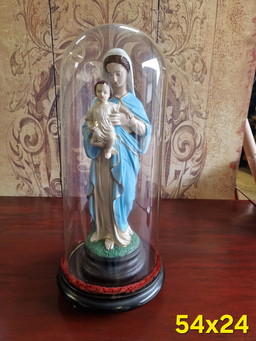 Campana di vetro antica con statua di Maria 55x25