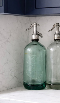 Duo decorativo: sfera di diaspro Maligano e gruppo di quarzo su piedistalli.