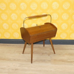Cestino da cucito classico anni '50 Scatola da cucito in legno su gambe