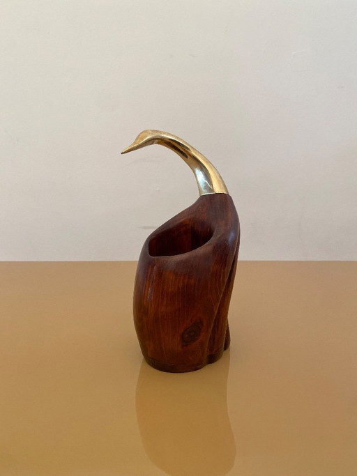 De Stijl Firenze Portabottiglie Legno Metallo Ottone Scultura Uccello anni '70De Stijl Firenze Portabottiglie Legno Metallo Ottone Scultura Uccello anni '70