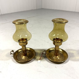2 x Midcentury Brass Candleholders | Slim Stem Modernist Design