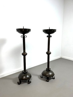 Set di 2 grandi candelabri da chiesa in ghisa in stile brutalista, anni '70.Set di 2 grandi candelabri da chiesa in ghisa in stile brutalista, anni '70.