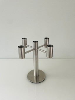 Candeliere in acciaio inox a cinque braccia, design moderno
