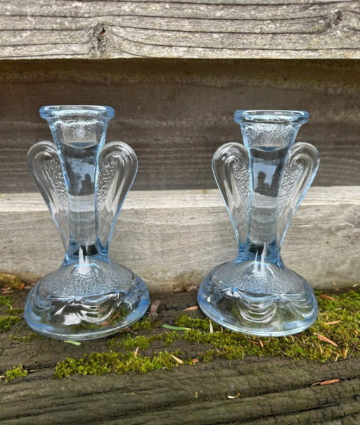 Candelieri in vetro Blue Bagley – art déco – set da 2
