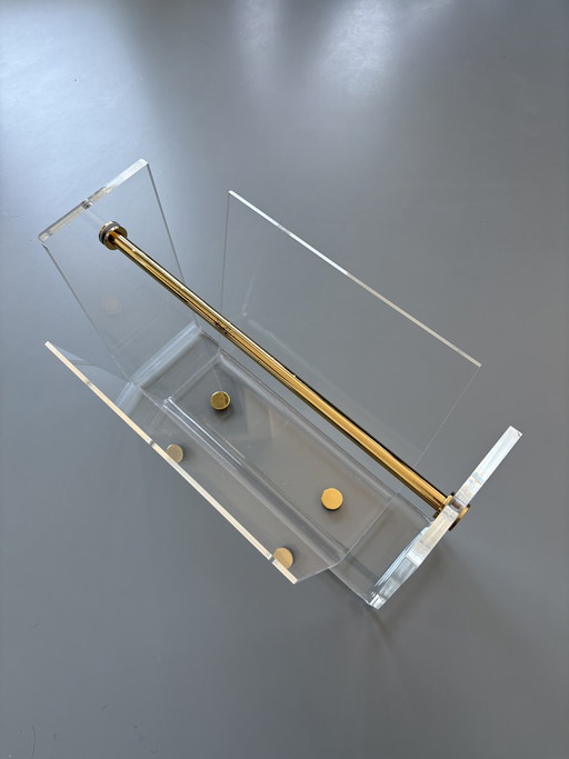 Portariviste in acrilico e ottone massiccio, Italia anni '70Portariviste in acrilico e ottone massiccio, Italia anni '70