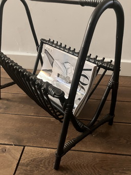 Portariviste j60/70, metallo laccato nero rattan.Portariviste j60/70, metallo laccato nero rattan.