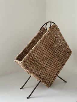Tijdschriftenrek zeegras uit het midden van de eeuw/ Vintage tijdschriftenrek