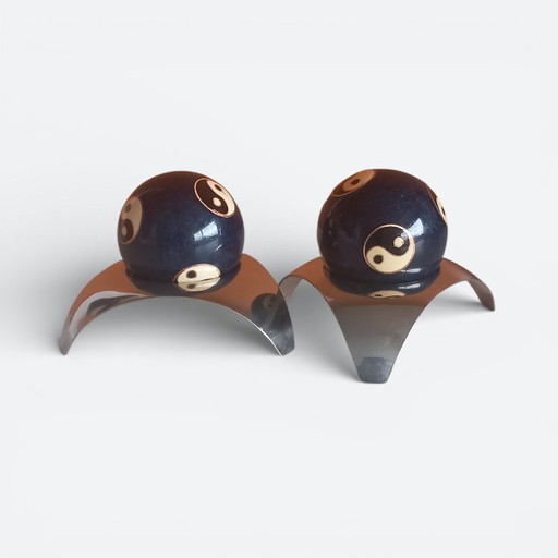 Set di sfere per meditazione di design – Yin Yang – Supporti in acciaio inossidabile – sfere sonoreSet di sfere per meditazione di design – Yin Yang – Supporti in acciaio inossidabile – sfere sonore