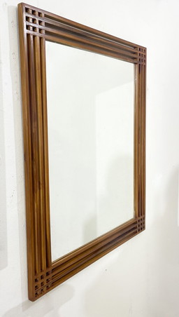 Grande specchio in bambù e rattan, anni '60Grande specchio in bambù e rattan, anni '60