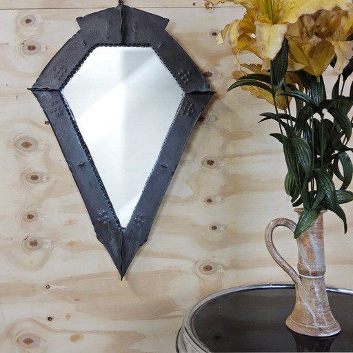 Specchio triangolare brutalista in rame martellato, anni '20