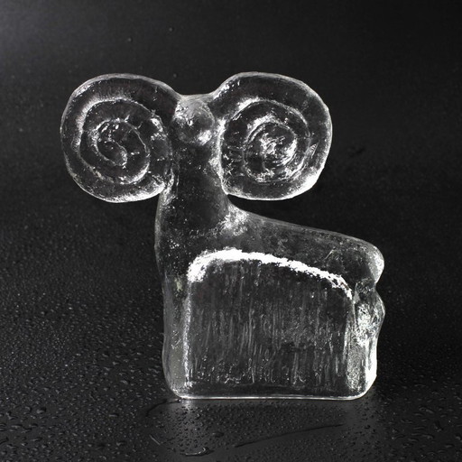 Statua vintage in vetro pressato di ariete / Glass Union / Rudolfova Hut / Repubblica Ceca / 1971