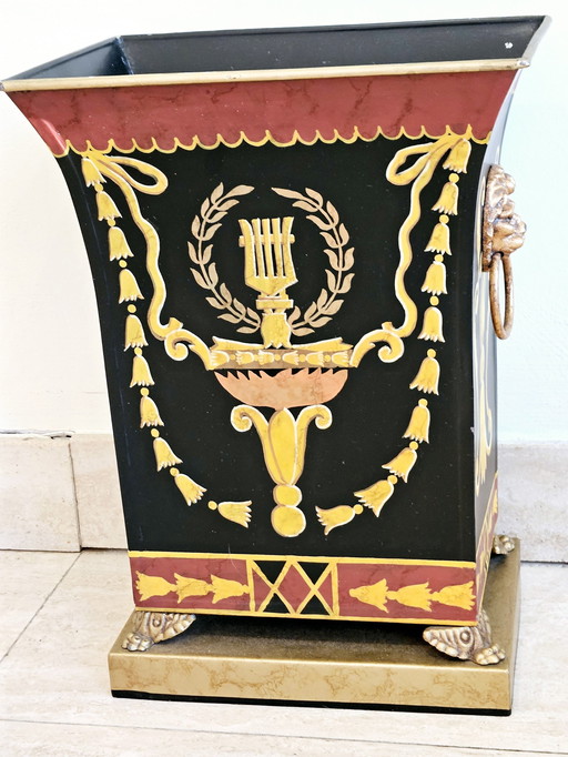 Grande vaso in vetro di Murano Millefiori con foglie d'oro firmato