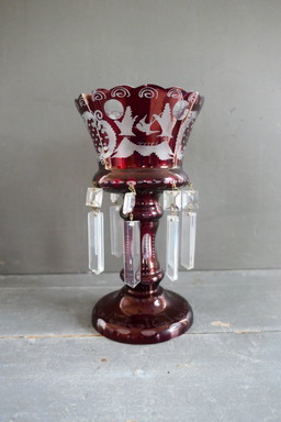 Vaso antico in cristallo di Boemia rosso rubino