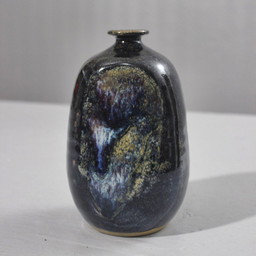 Vaso in argilla bicolore, firmato, anni '60