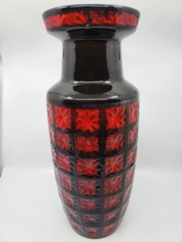 Ruscha modello 851-20 - Vaso d'epoca, ceramica della metà del secolo scorso in marrone-nero con smalto rosso a correreRuscha modello 851-20 - Vaso d'epoca, ceramica della metà del secolo scorso in marrone-nero con smalto rosso a correre