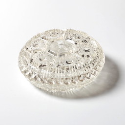 Portagioie in vetro pressato di metà secolo / Barattolo per caramelle geometrico