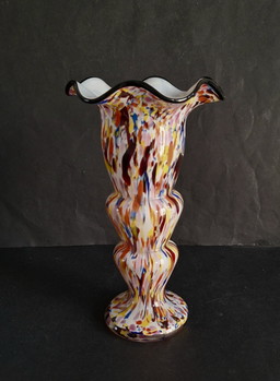 Vaso vintage in vetro ghiacciato fatto a mano, satinato, con rientranze
