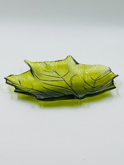 Vassoio portaoggetti vintage in vetro verde a forma di foglia, anni '70