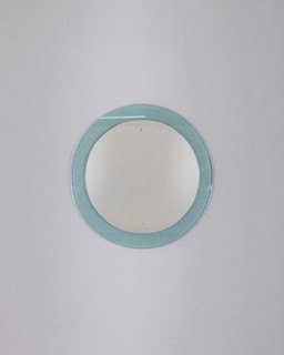 Specchio da parete rotondo vintage anni '70 in vetro fumé, design italiano