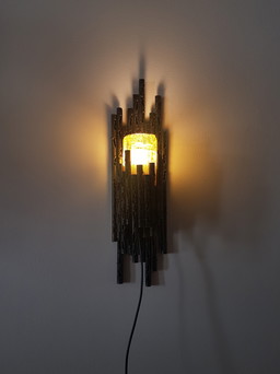 Lampada da parete brutalista in metallo e vetro design anni '60-'70