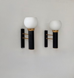 COPPIA DI APPLIQUE VINTAGE IN OPALINA E OTTONE