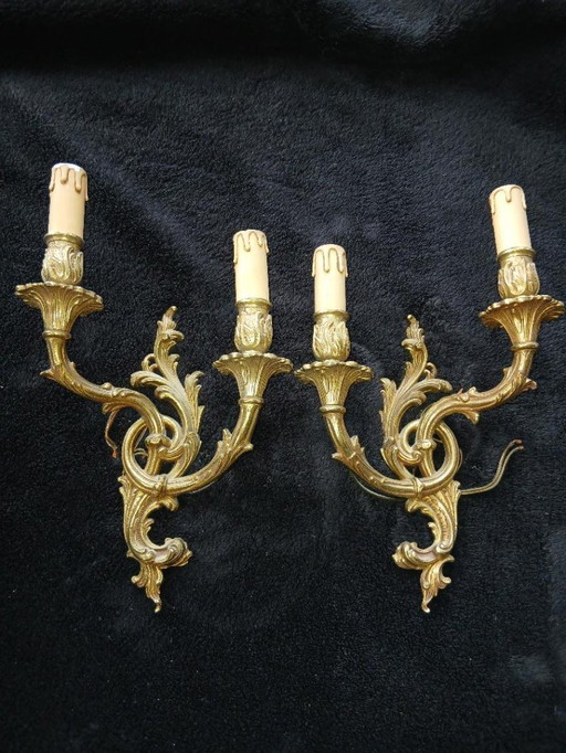Antiche lampade da parete in bronzo in stile rococò francese - Coppia