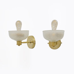 Coppia di applique vintage, ottone e vetro opalino, Italia 1970