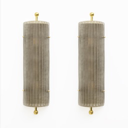 Coppia di applique da parete moderne in ottone italiano e vetro di Murano testurizzato