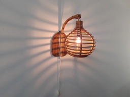 Bellissima lampada da parete vintage in rattan, lampada da comodino mcm in rattan